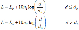双射线模式给出的路径损耗被写成为收发之间的距离d的函数,并且可以用两个不同斜率n1 和n2 的直线段近似。两线段之间的突变点也称为拐点出现在离发射端的距离为: