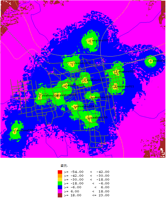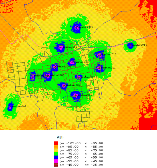 图3. 某城市的覆盖图前向接收功率