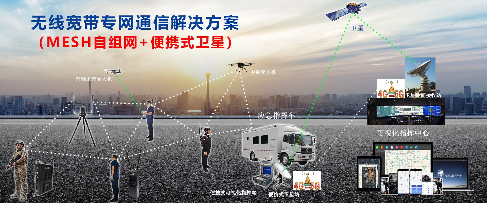 通过自组网融合卫星通信技术,接入到现场指挥中心的卫星便携站,可以实现前端现场的数据信息,及时地通过无线宽带自组网,接入卫星,传输到总指挥中心。