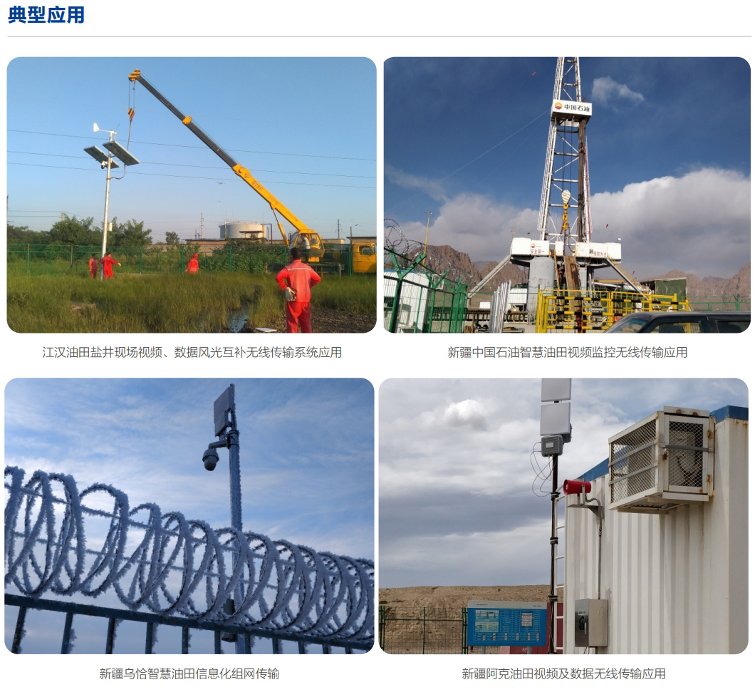 提供针对不同行业的专业解决方案,产品广泛应用于平安城市、建筑工地、森林防火、油田矿区、水利监控(江河湖海)、轨道交通、应急布控、海上组网等各种固定及移动点之间通信系统,在无人机、无人车、无人船、机器人的系统均有广泛的应用。