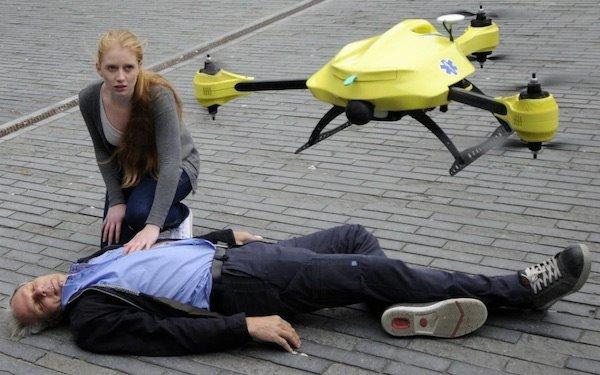 2014年11月有个荷兰人想设计一架急救用无人机,它专门针对患有心脏病的患者——当他们心血管疾病病发倒地,而旁人不知所措的时候,通过卫星定位的无人机则能以最快速度将急救用的药物、装备送到患者身边,方便别人进行急救。如果该患者附近没人留意到该患者倒地的事情也可以通过无人机发出警报通知别人。如果该无人机的应用能够顺利进行,也可以将同样的功能引用到其他患者身上。