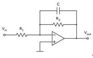 下图所示是一个由电阻、电容、运算放大器构成的有源低通滤波器: