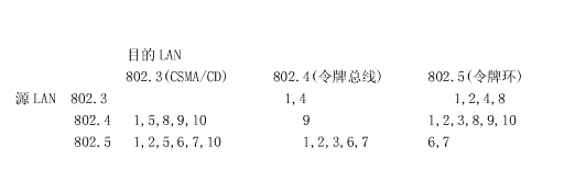 由于各种802 LAN的特殊性,如:802.4帧带有优先权位、802.5帧字节中有A和C位等,九种网桥都有其特殊的问题.见下表: