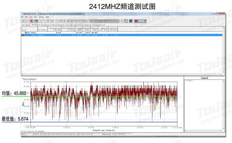 以上两张图是同一款300M无线网桥,分别在2.4G和2.3G频道跑带宽的测试结果图。从图上数据显示可以看出,图一的波动幅度很大,“毛刺”特别多。图二明显比图一稳定,一直保持者良好的传输状态,信号非常稳定。