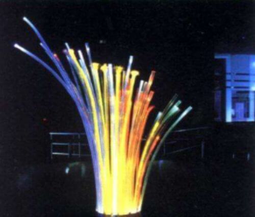 “光是沿直线传播的”这个定律是早在十四世纪元代天文数学家赵友钦设计的小孔成像实验就得到了严谨的验证。而1870年,英国物理学家廷德尔却在实验中观察到了光沿着曲线传播了。在一次实验中,把光照射到盛水的容器内,从出水口向外倒水时,光线也沿着水流传播,出现弯曲现象,这好象不符合光只能直线传播的定律。而且还发现光能沿着从酒桶中喷出的细酒流传输,光也顺着弯曲的玻璃棒前进。这是为什么呢?难道光线不再直进了吗?这些现象引起了丁达尔的注意,经过他的研究,发现这是光的全反射作用,即由于水等介质密度由于比周围的物质(如空气)大,即光从水中射向空气,当入射角大于某一角度时,折射光线消失,全部光线都反射回水中。