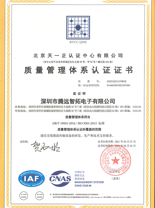ISO9001质量管理体系认证证书